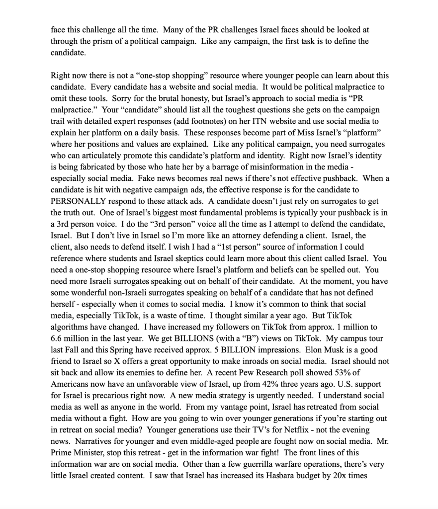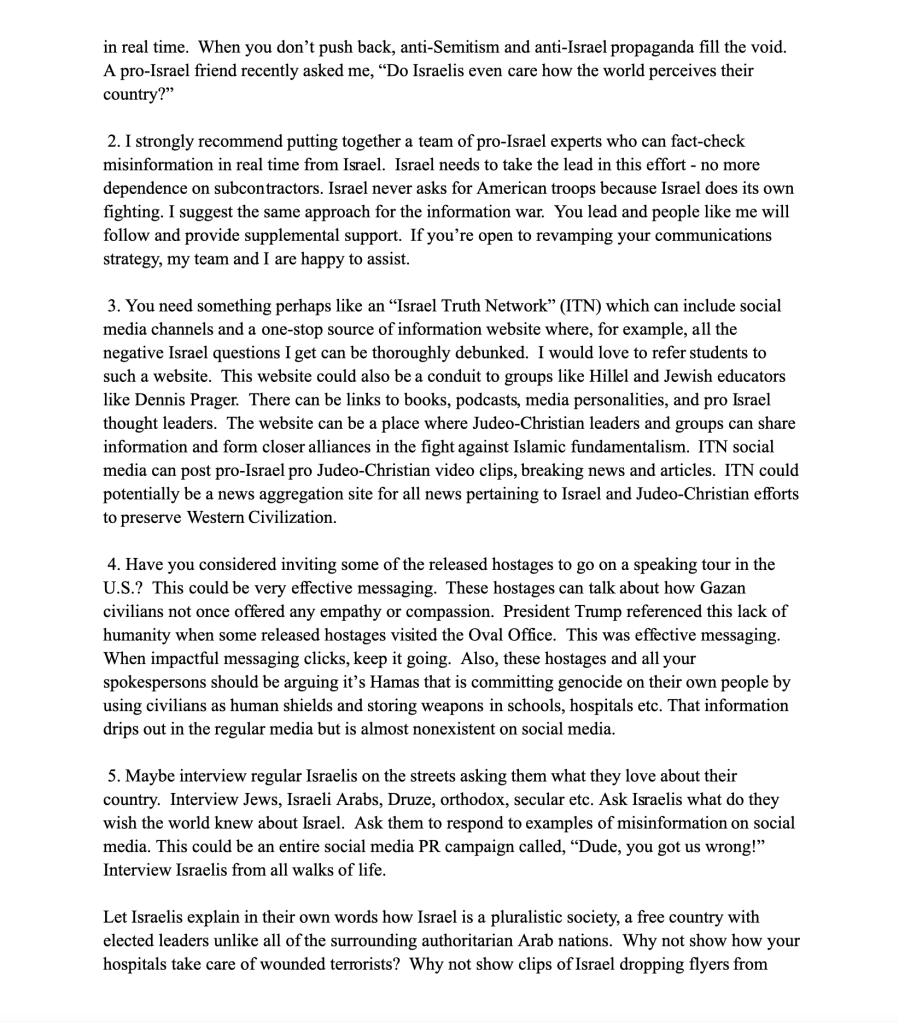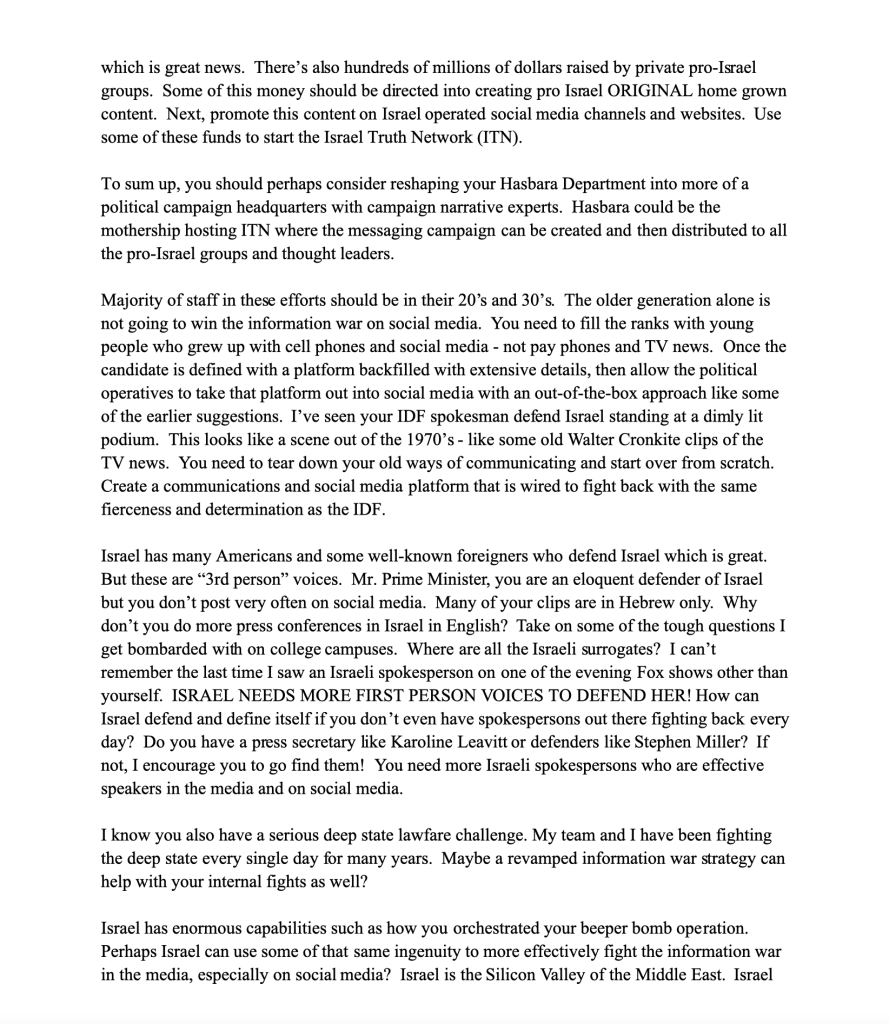 Charlie’s goal was to warn P.M. Netanyahu and give him ideas on how to fight against the propaganda.