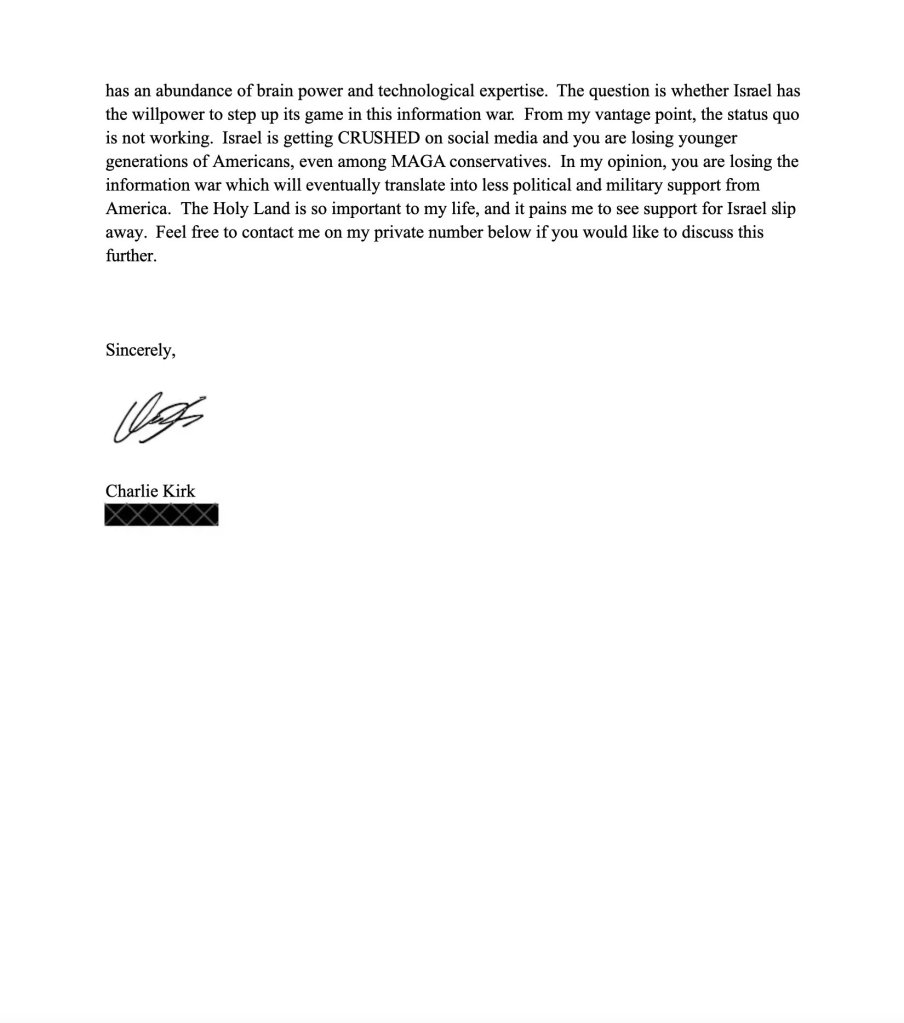 After Charlie Kirk was assassinated on September 10, 2025, evil began spreading lies that Charlie did not support Israel and Israel had him killed. This letter is proof those were lies being pushed to create division between Christians and Jews, as well as the United States and Israel.